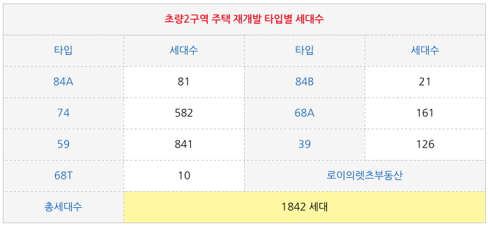 현재는 84타입이 가장 크고 74타입, 59타입이 가장 세대수가 많게 되어 있습니다만