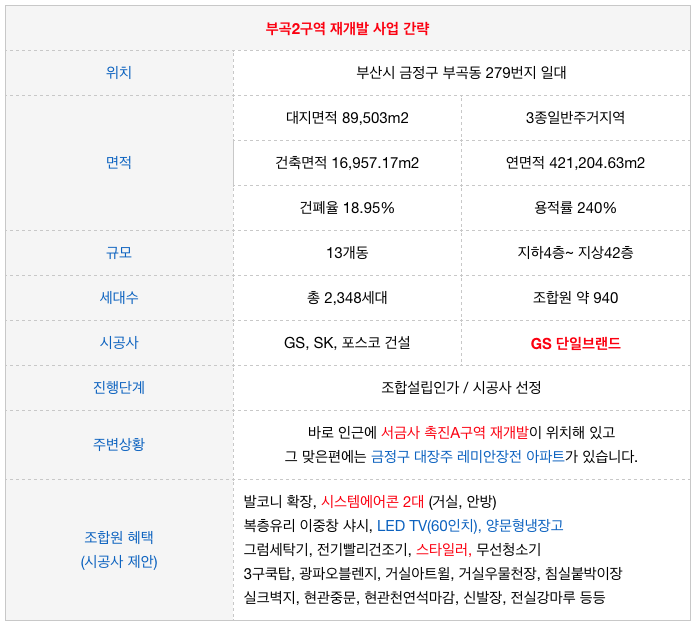 부곡2구역 재개발의 특징입니다.