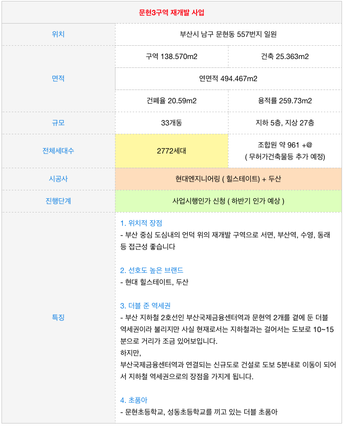 하반기기대 문현3구역 재개발 조합소식 및 물건