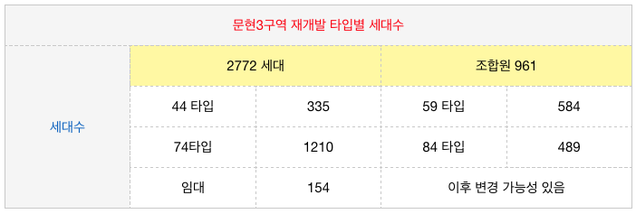 문현3구역 재개발의 타입별 세대수입니다.
