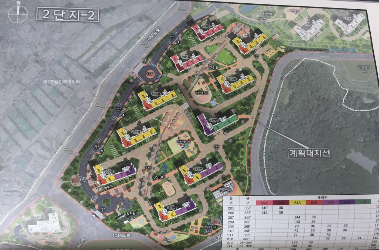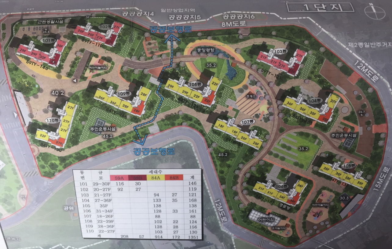 1단지는 지하철 가까이에 배치 되어 있고 2단지으 단지 안쪽과 약간 높은지대에 위치해 있습니다.