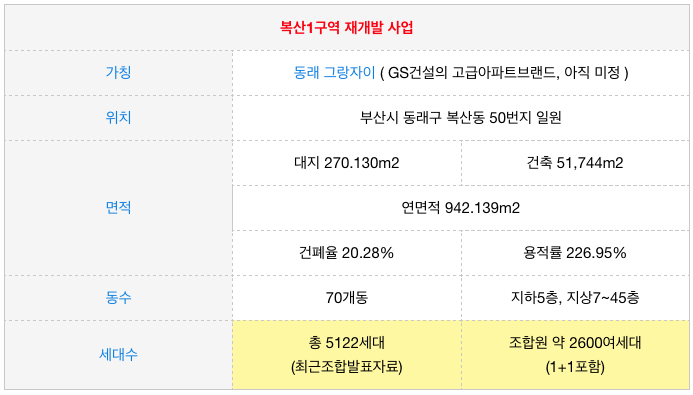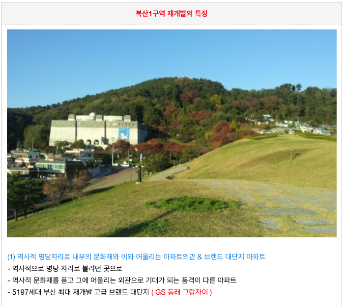 동래구의 최대단지 복산1구역 재개발 물건을 정리해 드리도록 하겠습니다.