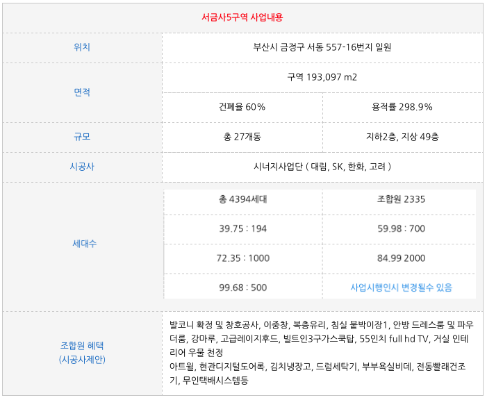 서금사5구역 재개발의 간략한 특징을 정리하였습니다.