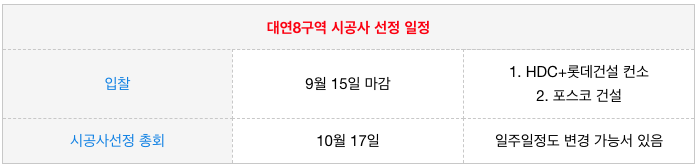 1. 대연8구역 재개발 시공사 선정 일정