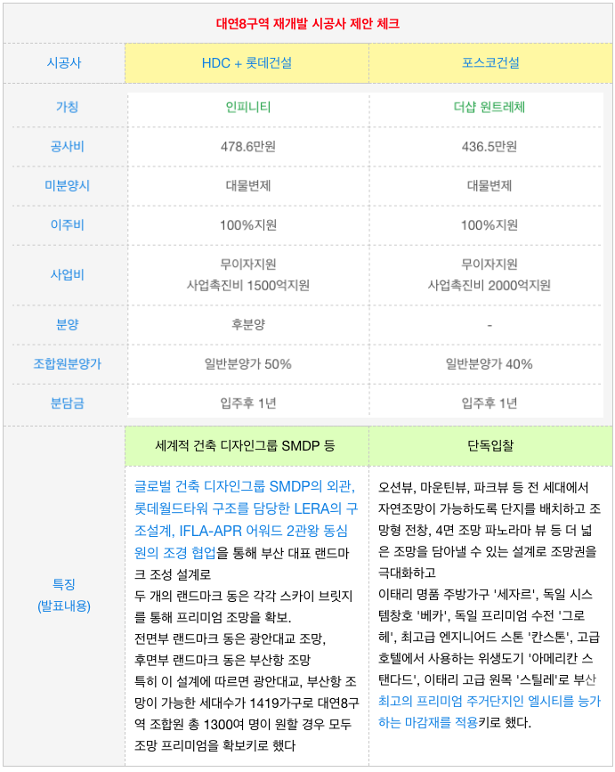 2. 대연8구역 재개발 시공사 제안안 체크 / 비교