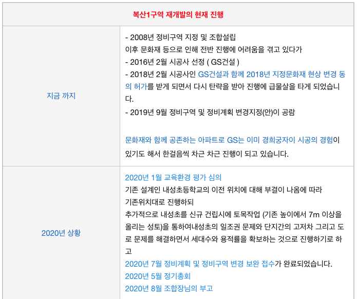 복산1구역 재개발의 지금까지 그리고 향후 진행 예상이며