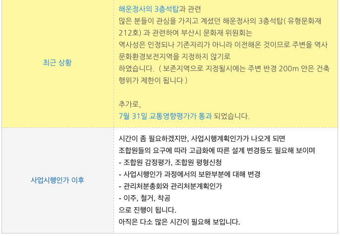 해운정사의 3층석탑과 관련 부산시 문화재 위원회는 역사문화환경보전지역을 지정하지 않기로 하였으며