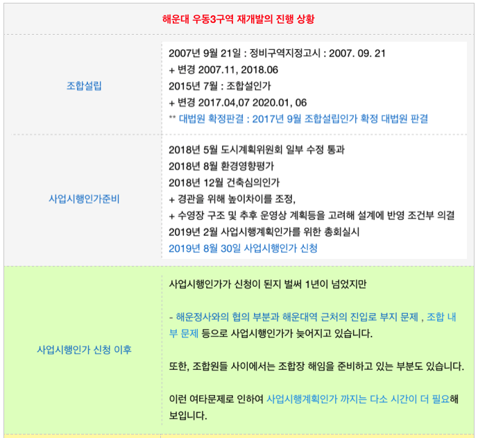 우동3구역 재개발은 사업시행인가 신청이 들어가 있기는 여러 문제로 인하여