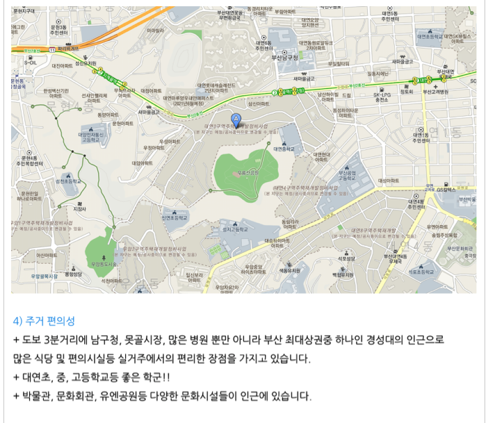 - 부산 지하철 1호선 역세권이며 대연동의 우수한 실거주 환경을 가지고 있습니다.