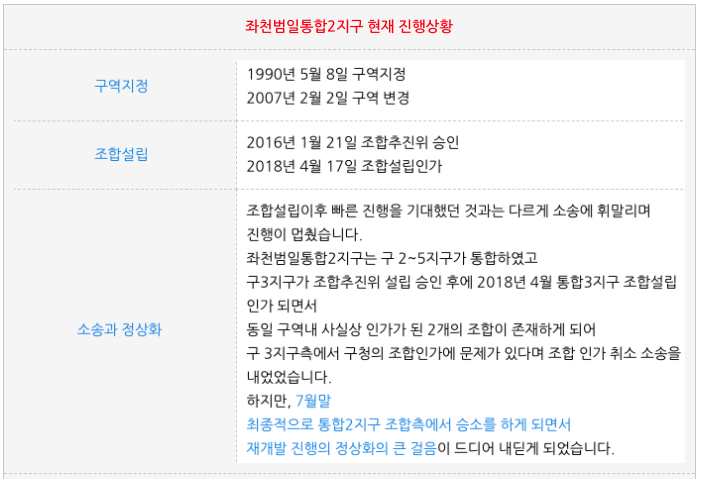 올해 2020년 7월에 최종 통합2지구 조합측에서 승소하며 정상화에 파란불이 들어 왔습니다.