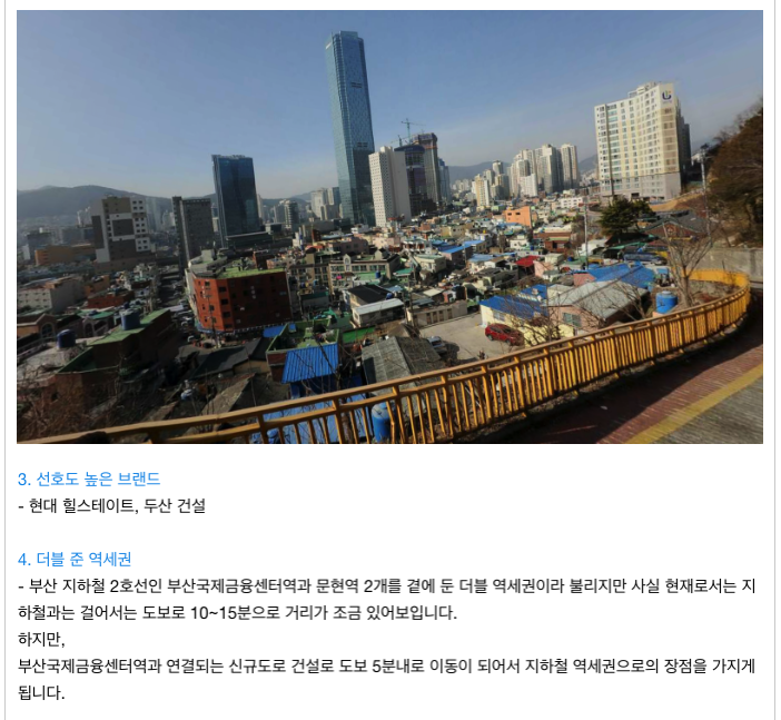 부산 남구 이기는 하지만 부산 진구에 가까이 있는 문현3구역은 국제금융센터에 입점할 많은 문화공간과