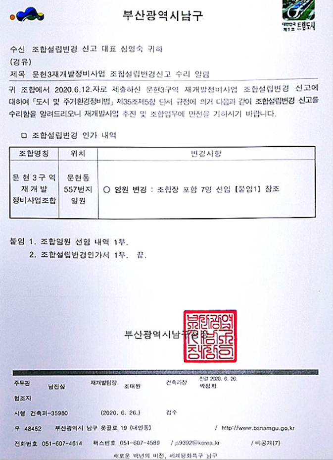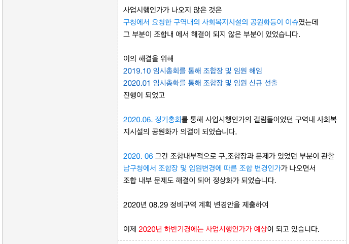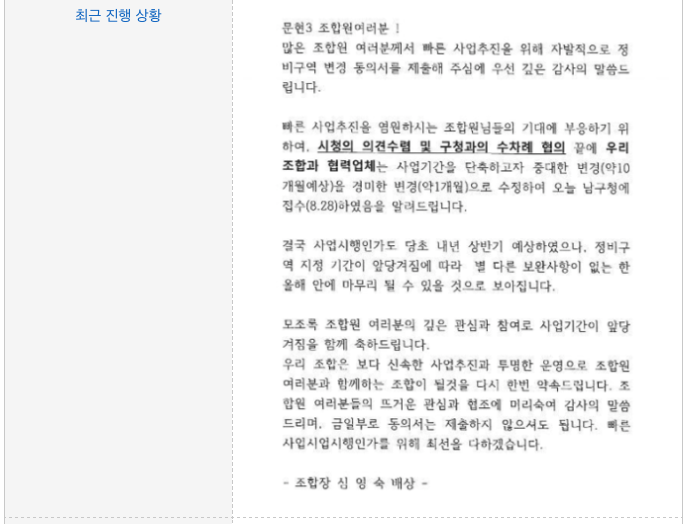 사업시행인가 신청에 문제와 조합 내부적으로 새로운 조합장 선출등의 문제가 겹쳐서