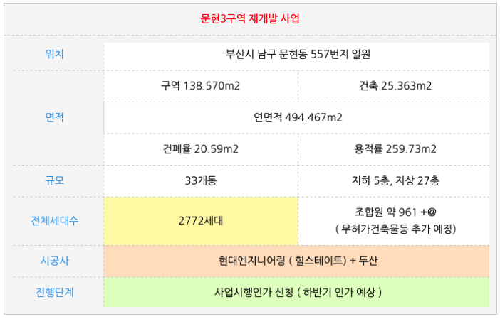 문현3구역 재개발의 특징을 간단하게 정리하였습니다.