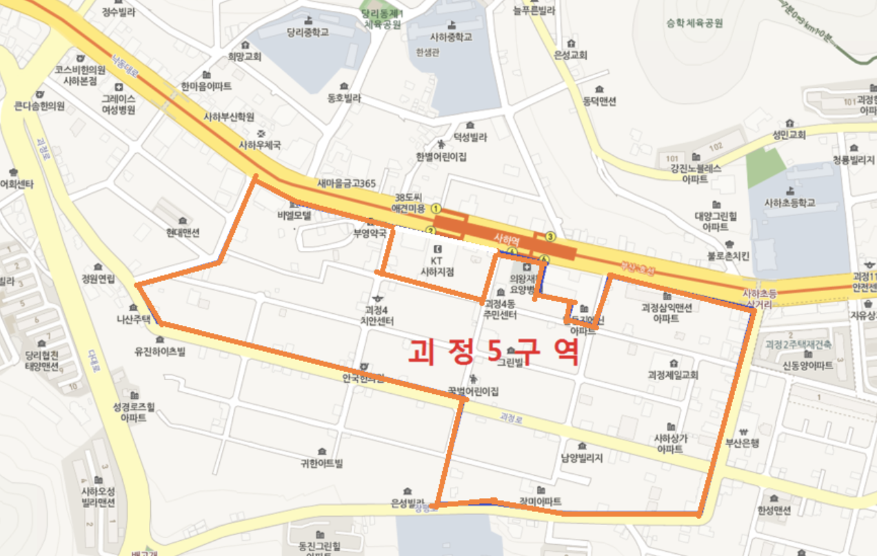 괴정5구역 재개발은 진행상황으로는