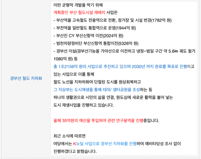 빼놓을수 없는 부산 철도 재배치 사업관련하여 정리해 드리겠습니다.