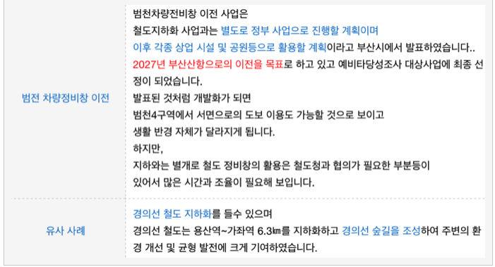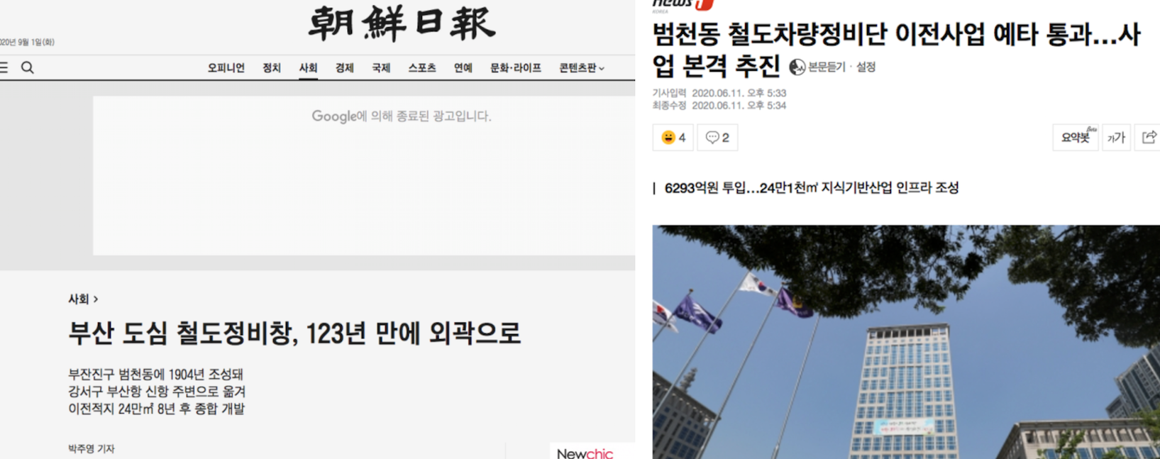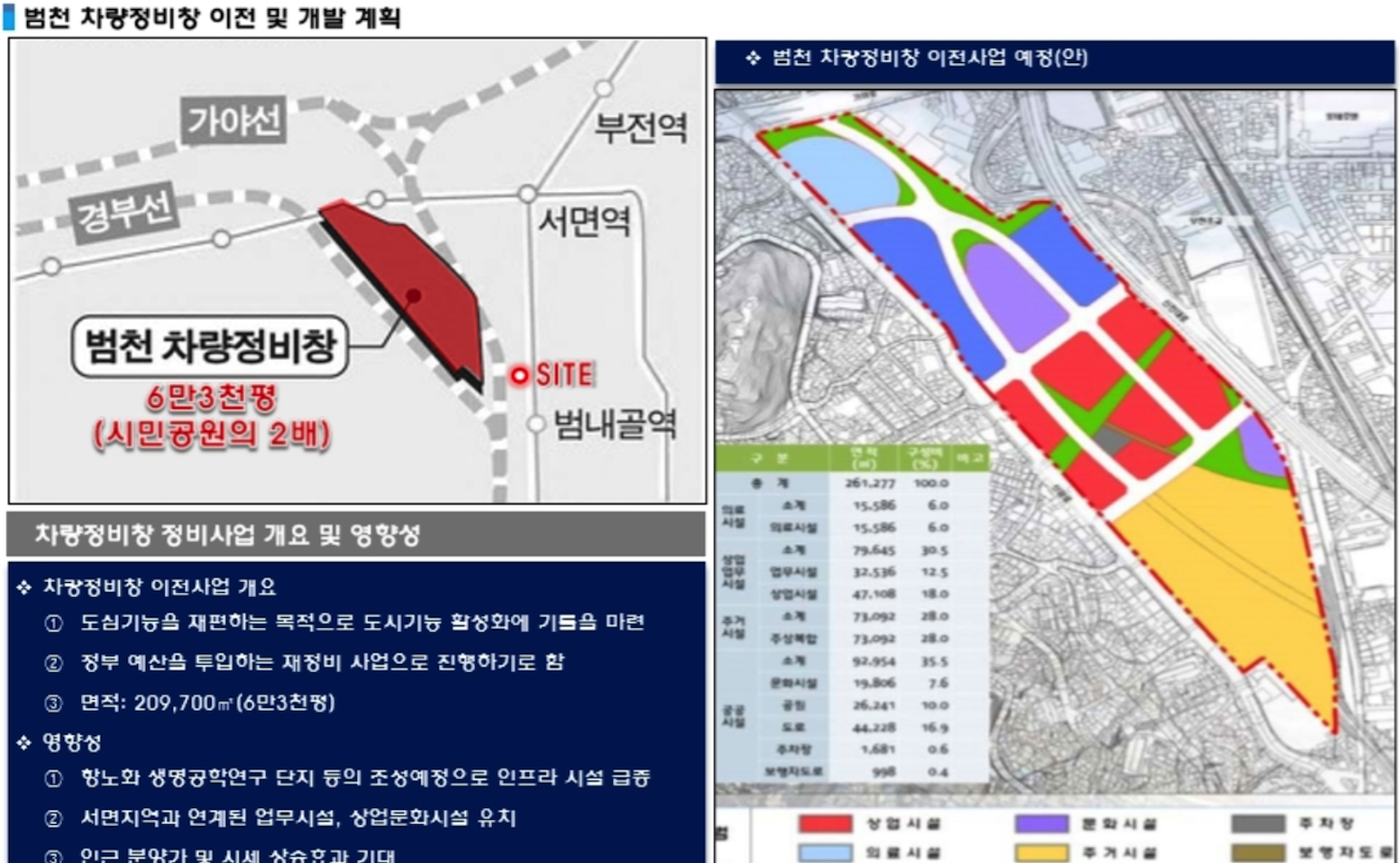 범천 차량정비창 이전이 지난 6월 11일 예비타당성조사 통과로 신문기사가 나면서 큰 이슈가 되었었습니다.