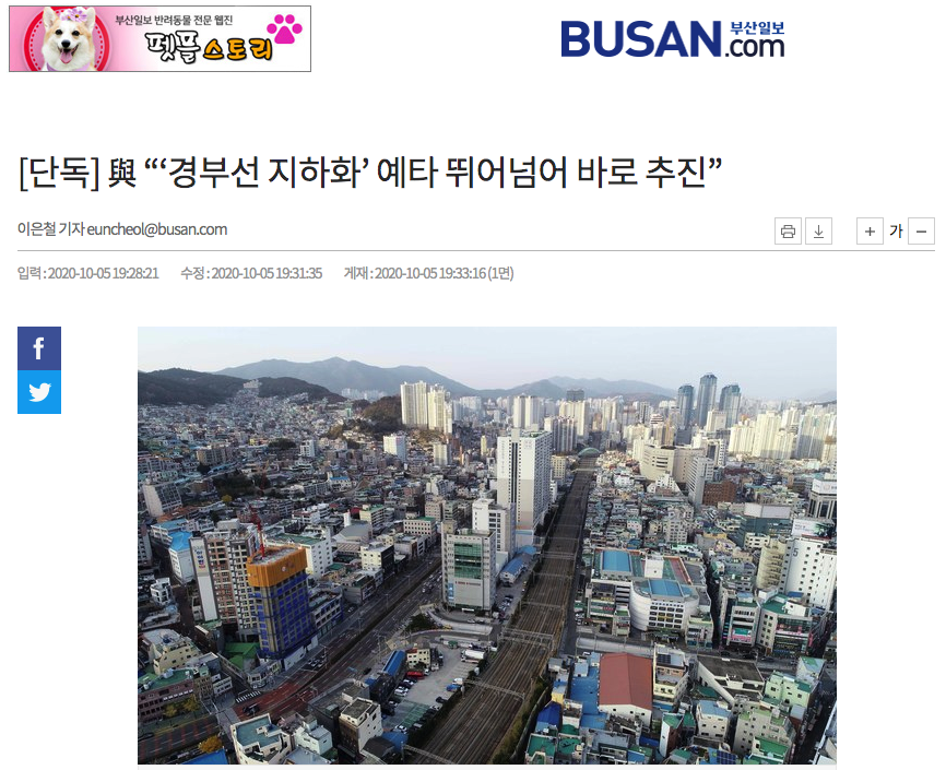 최근 뉴스로는 철도 지하화가 정부 K뉴딜사업으로 지정하여 예타를 넘어 바로 추진하겠다는 기사도 있었습니다.