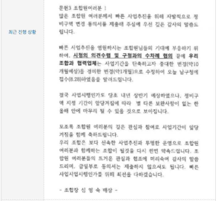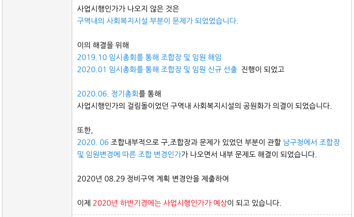 그 때부터 조합 내부적으로 그리고 사업시행계획인가 부분에 문제가 있어서 계속 지연이 되어왔습니다.