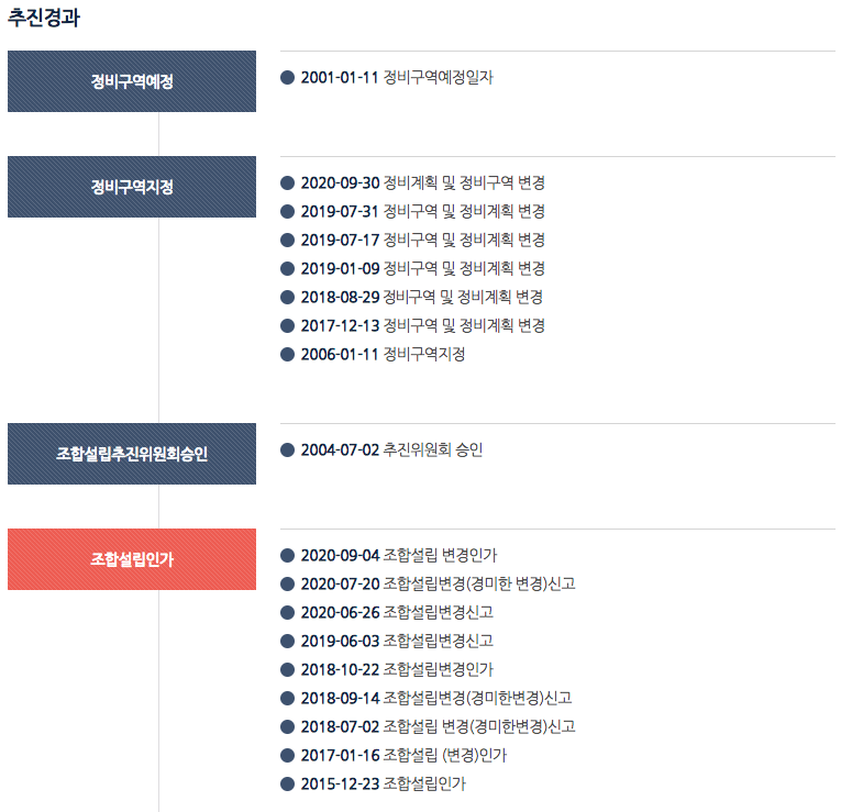 구역 지정 후에 10여년 만인 2015년 부터 본격적으로 움직이기 시작하여