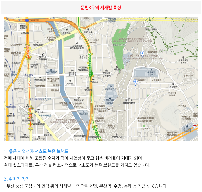 문현3구역 재개발의 특징입니다.