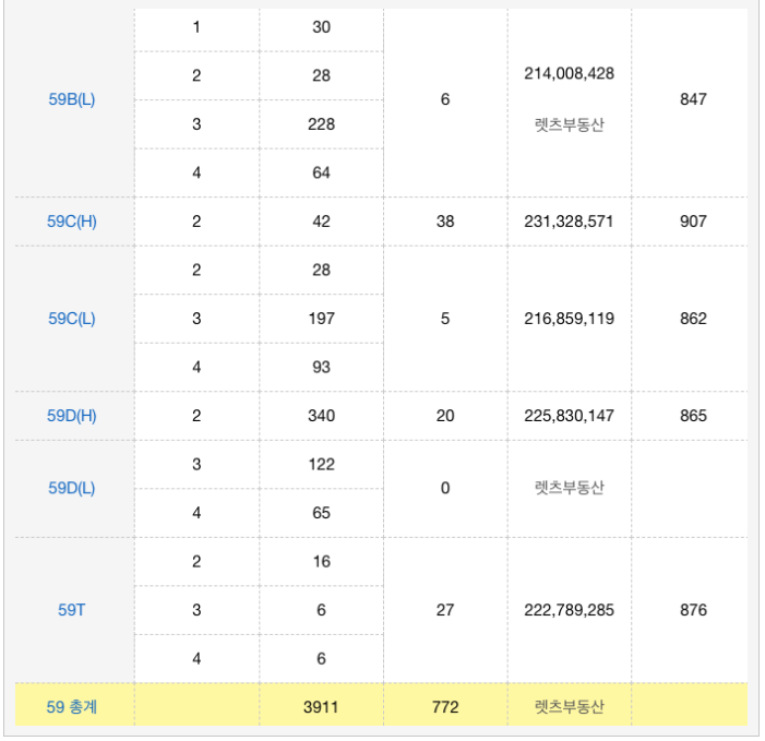 아래 각 타입별 특징과 타입별 평균 분양가도 참고하시면 됩니다.
