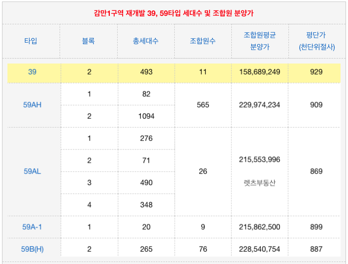 감만1구역 재개발 107A, 인수가작은 59타입등