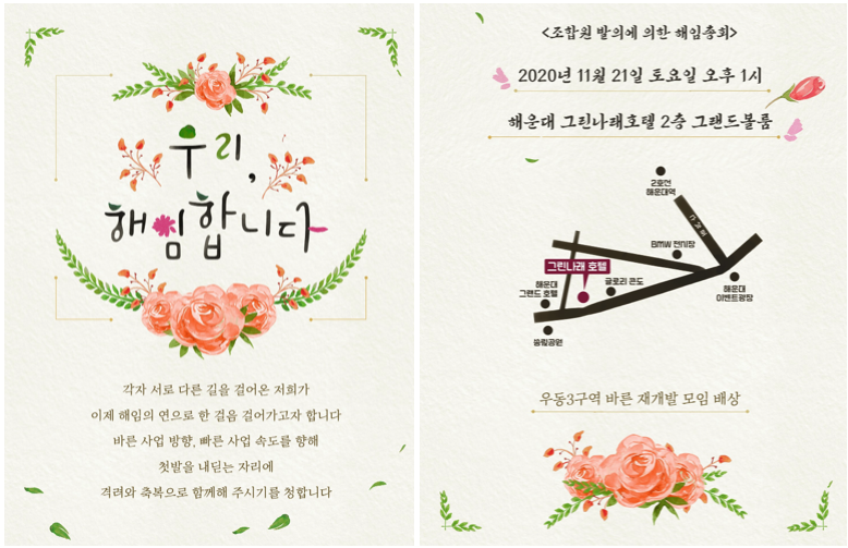 해당 지연들로 인해 위에 언급 드린 것처럼 조합장 해임을 위한 임시총회까지 예정되어 있는 상황입니다.