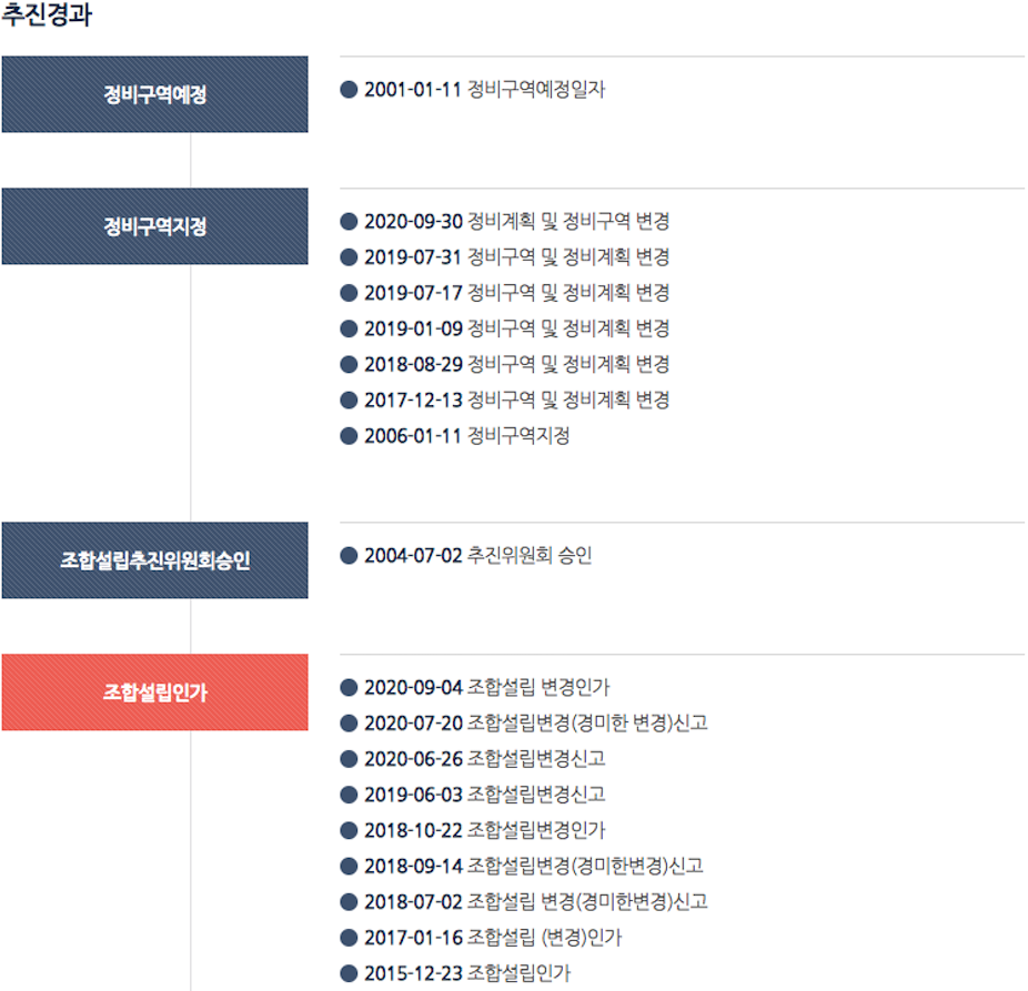 구역 지정 후에 10여년 만인 2015년 부터 본격적으로 움직이기 시작하여