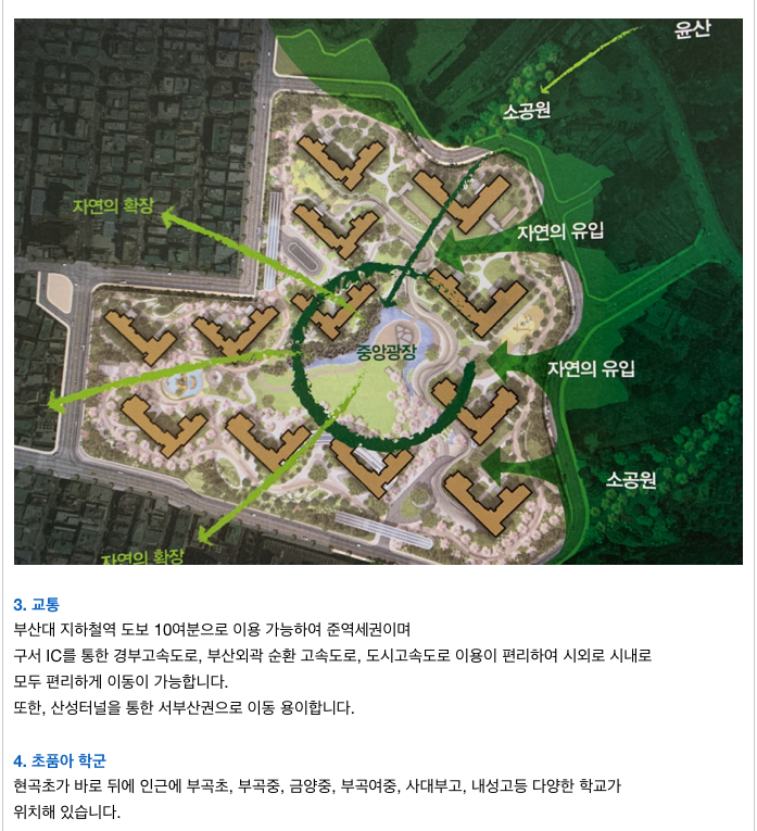 + 1군 시공사 브랜드 아파트 + 초품아 + 숲세권 + 온천천 + 경부선 등 교통환경 좋은 + 지하철 10분 거리