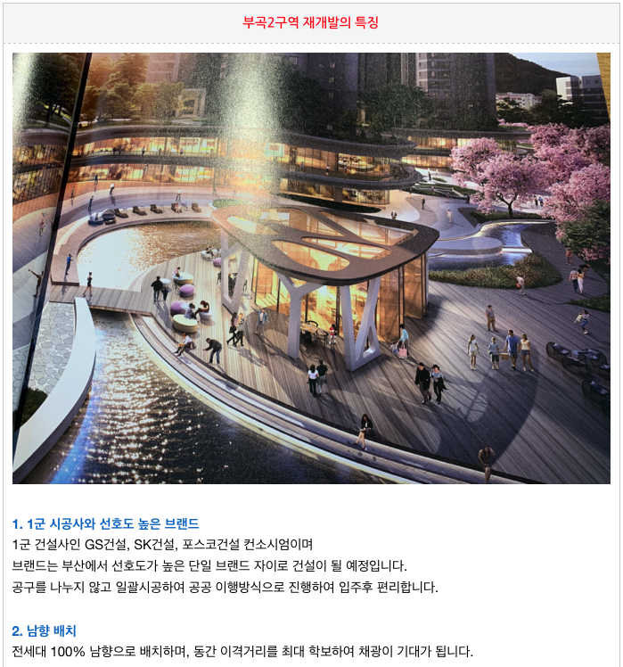 부곡2구역 재개발의 간략한 특징들 입니다.