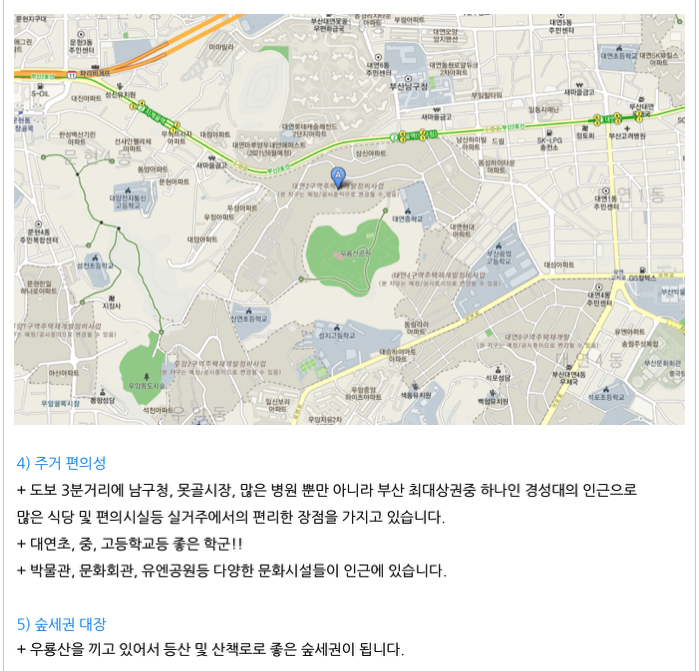 - 부산 지하철 1호선 역세권이며 대연동의 우수한 실거주 환경을 가지고 있습니다.