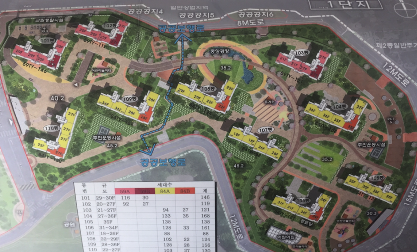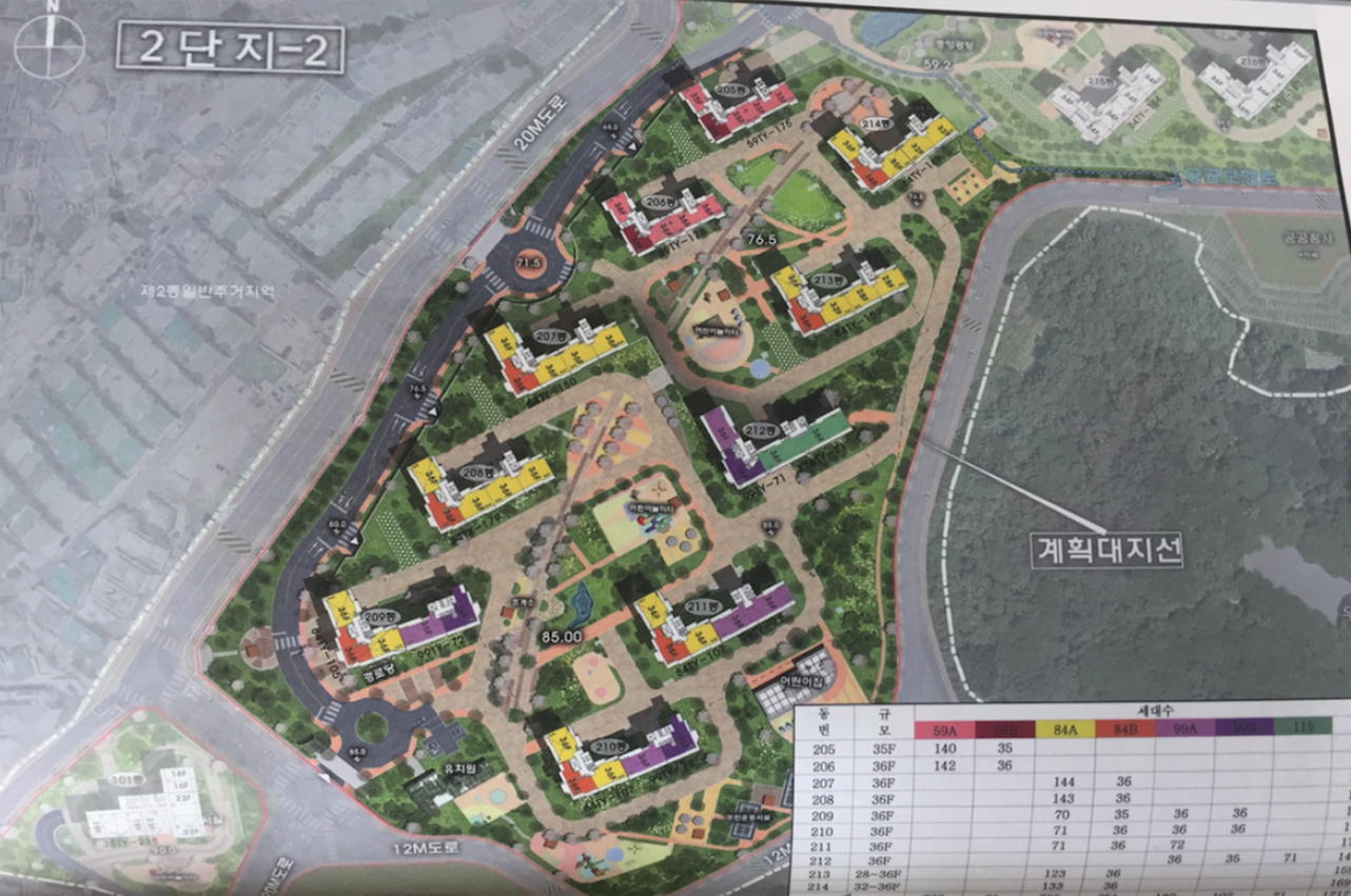 - 84타입은 주 대로변의 안쪽으로 배치되어 실거주에 좋고 1,2단지에 고루 분포되며 가장 수요 많은 타입이며