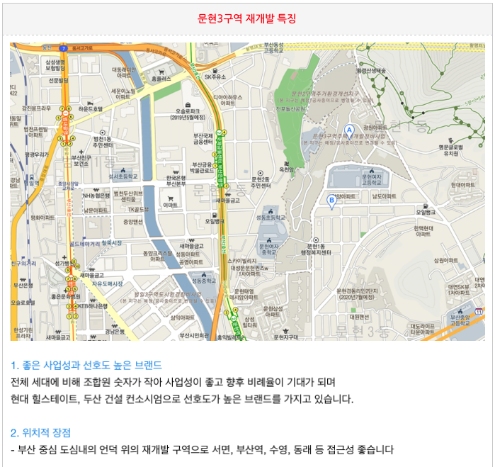 - 좋은 사업성, 힐스테이트라는 부산에서 선호도 좋은 브랜드, 초품아, 도보 가능한 지하철