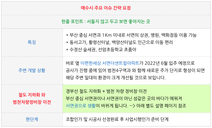 그 부산 중심 서면권으로의 입지적 장점이 살아나게 될 것이고 주변일대가 크게 변화가 될 것입니다.