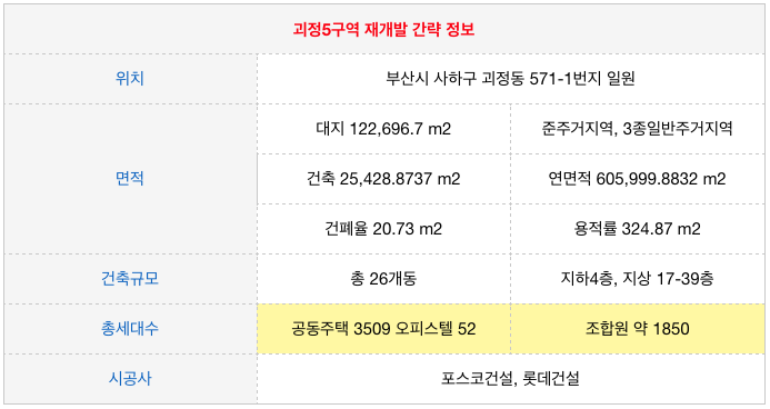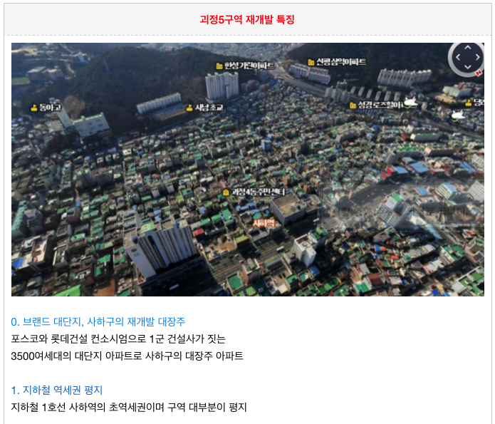 괴정5구역 재개발의 특징을 간략히 정리하였습니다.