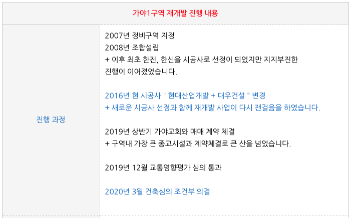 가야1구역 재개발의 진행 상황을 체크해 드리겠습니다.
