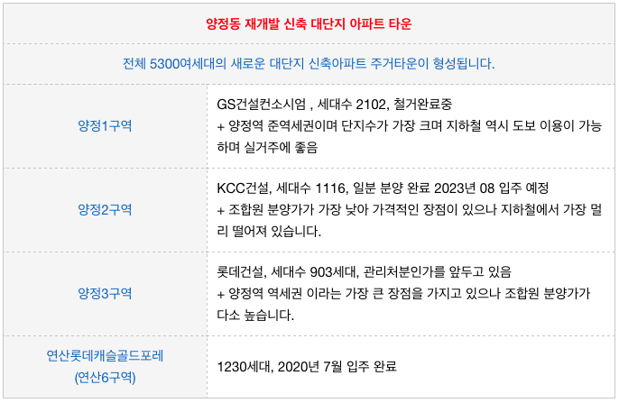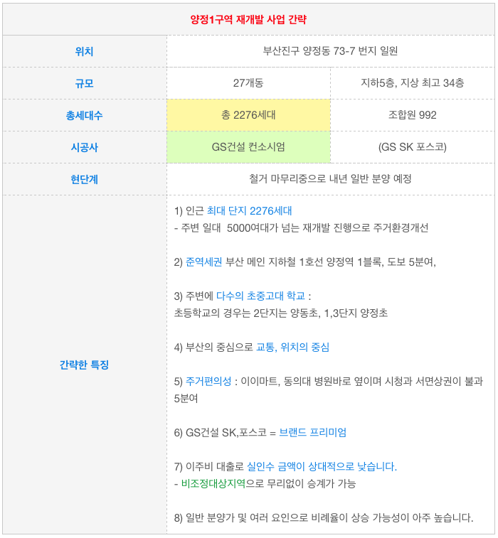 양정동의 재개발 구역 중에 가장 큰 대단지 + TOP 브랜드 + 실거주에 좋은 위치를 가지고 있어서