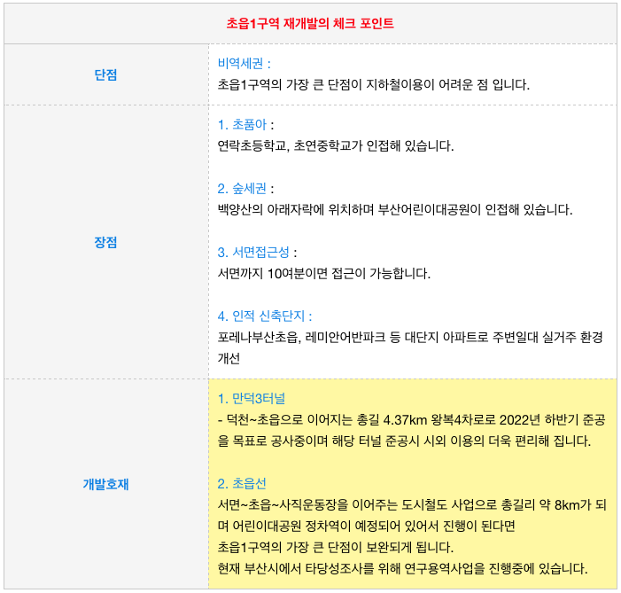 초읍1구역 재개발은 상대적으로 아직 부산의 다른 많은 구역들보다 시세가 저렴한 편입니다.