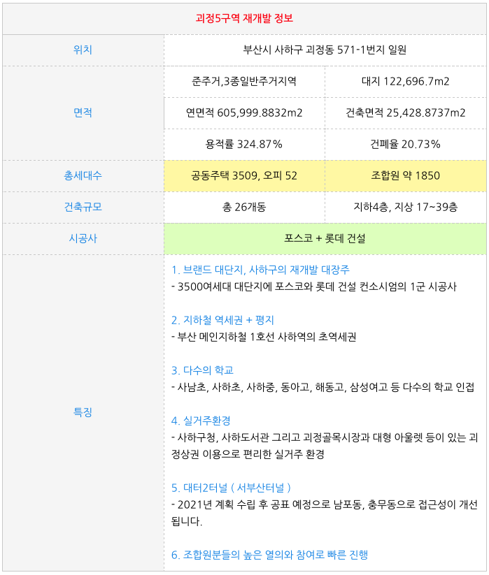 괴정5구역 재개발 물건 정보 |