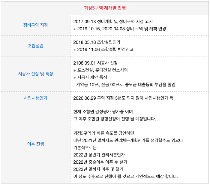 괴정5구역 재개발은 현재까지의 진행 상황입니다.