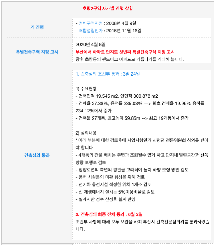 초량2구역의 진행과정에서 여려움이 좀 있었습니다.