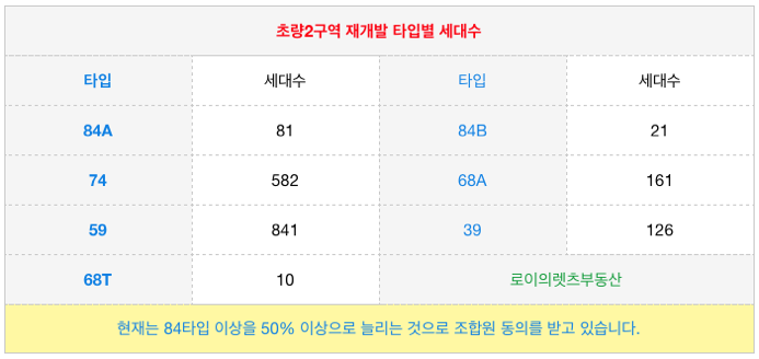 아래 타입별 세대수는 참고만 하시면 되시며 변경 이후에 조합분들의 가능 타입도 예상가능할 것 같습니다.