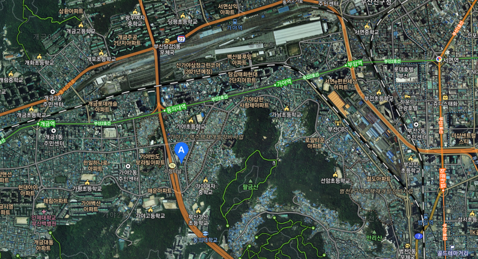 부산의 중심 도심인 서면과 지하철 2개코스의 인접 지역으로 위치적으로 큰 장점을 가지고 있습니다.