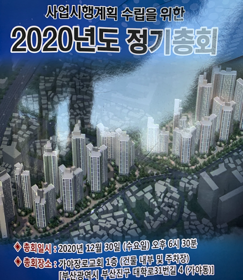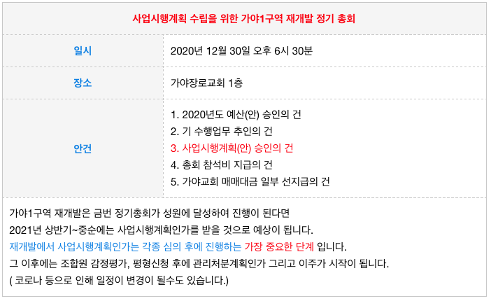 가야1구역 재개발의 최근 소식은 바로 정기 총회 소식입니다.