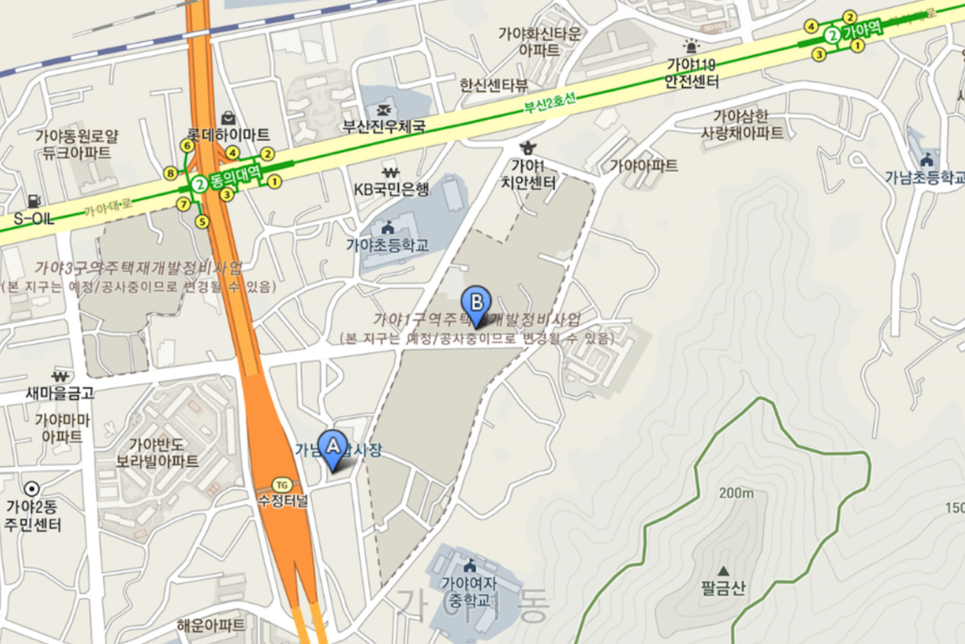 다만, 가야 초등학교 앞의 도로에 상가가 꽤 많아 향후 협의가 조금 필요해 보입니다.
