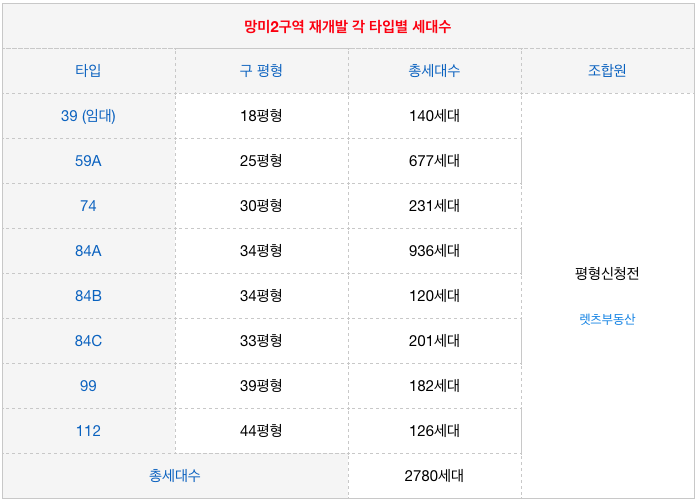 망미2구역 재개발의 현재 각 타입별 세대수 입니다.