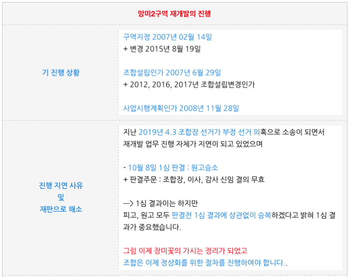 - 내년 중순경에 조합이 정상화가 된다고 하면 향후 2~3년이면 관리처분계획인가가 기대가 되며