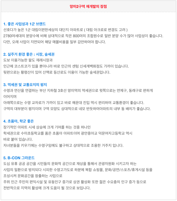망미2구역 재개발에 관심이 있으신 분들은 연락주시면 자세히 설명드리곘습니다.