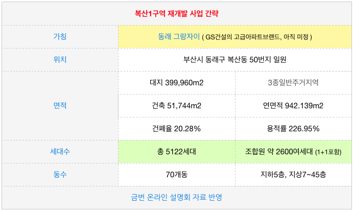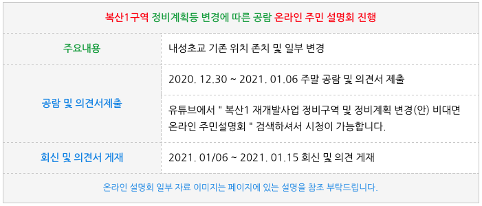 동래구 복산1구역 재개발 정비계획변경등에 따른 온라인 주민설명회 및 현 물건