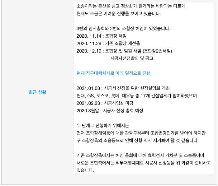 곧바로 조합설립에 문제가 있다는 소송이 제기 되면서 어려움을 겪으며 관심에서 살짝 멀어졌었습니다.